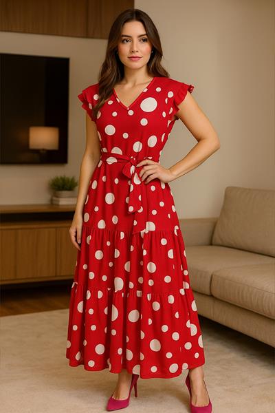 Vestido Rosa cor Pink com Bolinhas Brancas