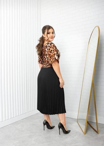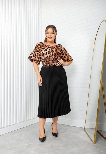 Parte Inferior Plissada: Em um clássico preto, que adiciona um toque de sofisticação e versatilidade.